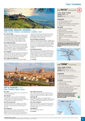of narrow alleys. Next, continue to Spoleto where Day 5: San Gimignano to Florence (B) • eSIM