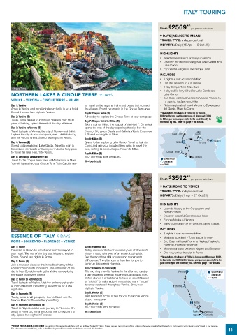 ESSENCE OF ITALY 9 DAYS • Meals as specified • Tours as per itinerary