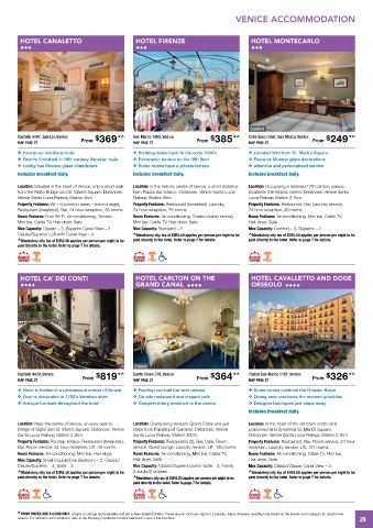 Location: Near the centre of Venice, an easy walk to Location: Overlooking Venice’s Grand Canal and just Location: In the heart of the old town centre and