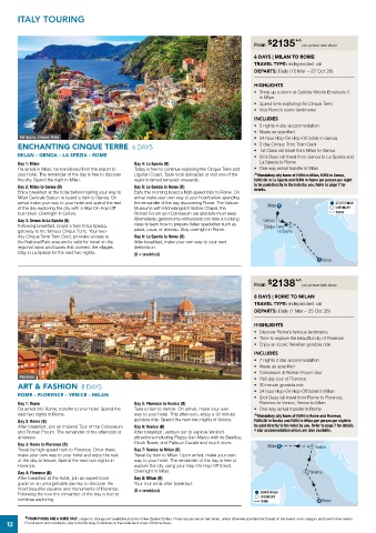 your hotel. The remainder of the day is free to discover Ligurian Coast. Taste local delicacies or visit one of the ^Mandatory city taxes of EUR4 in Milan, EUR3 in Genoa,