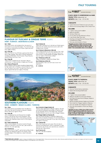 On arrival in Rome, be transferred from the airport or Today take a half day tour to the famous Chianti region. and EUR2 in Monterosso al Mare per person per night