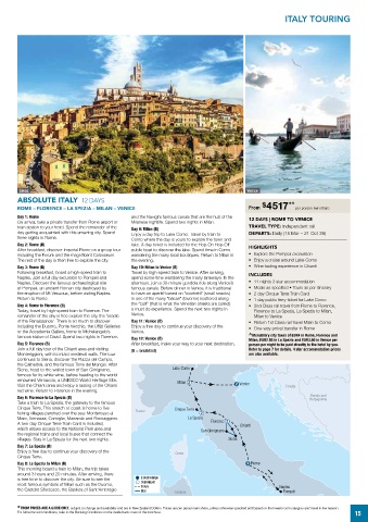 of the Renaissance’. There is so much to discover Day 11: Venice (B) • Return 1st Class rail travel Milan to Como