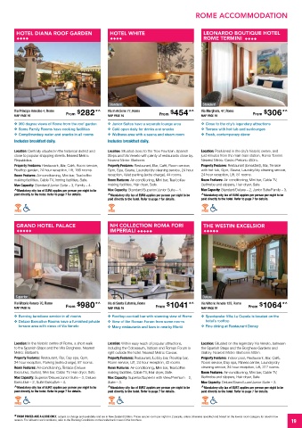 ❖ 360 degree views of Rome from the roof garden ❖ Junior Suites have a separate lounge area ❖ Close to the city’s legendary attractions