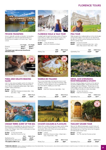 1 to 2 People 3 to 5 People Departs: Daily from Florence at 9:45am Departs: Daily from Florence at 8am (Apr – Oct),