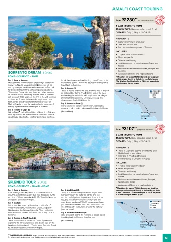 After arriving in Naples, visit the Pompeii excavation Today is at leisure to explore Amalfi as you wish. to page 7 for details. A Capri landing fee of EUR10 per person