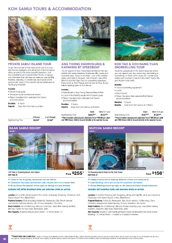 • Return transfers from selected Koh Samui • Return transfers from selected Koh Samui accommodation