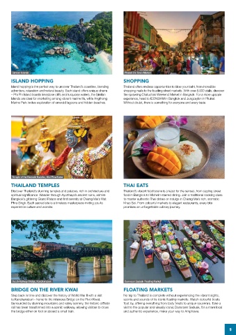 Islands are ideal for snorkelling among vibrant marine life, while Angthong experience, head to ICONSIAM in Bangkok and Jungceylon in Phuket.