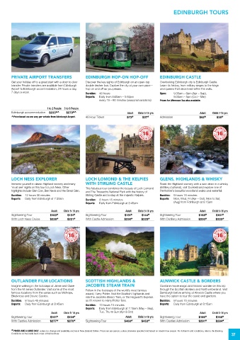 ^ Price based on one way per vehicle from Edinburgh Airport. 48 Hour Ticket $73 * $37 * Admission $62 * $38 *