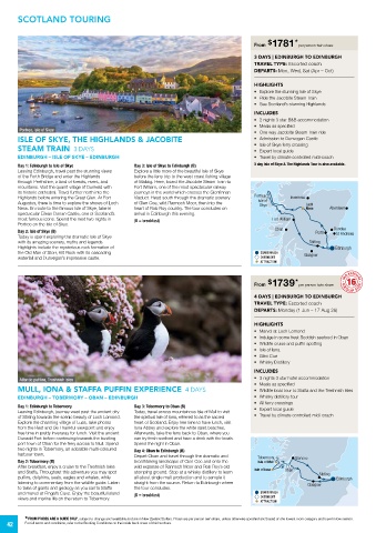 of Stirling towards the scenic beauty of Loch Lomond. the spiritual Isle of Iona, referred to as the sacred • Travel by climate controlled midi-coach