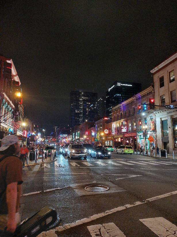 A new day means a new city and we are saying goodbye to one music capital and hello to another because we were off to Nashville Tennessee. Today’s coach stop was at the Brooks Shaw’s Old Country Store, an old-school ice cream parlor with a Southern buffet in a 19th-century general-store setting for a quick bite before we were off again. Our Coach dropped us off right in the Heart of Nashville on Broadway Street . The main street of Nashville full of Honky Tonks, cowboy boots and country music! After a delicious lunch at Lainey Wilsons Bell Bottoms Up Bar with my first taste of Authentic Nashville Hot chicken (HOTTTT but delicious!) A few of us who hadn’t yet bought ourselves a pair of cowboy boots went shopping at a few of the numerous boutiques before we headed back to the hotel – Comfort inn and suites downtown - which in true Nashville style had a pool in the shape of a guitar!! Where we could rest up and change ready for a night on the town, roof-top bar hopping from Luke combs category 10 roof top bar to Lainey Wilsons bell bottoms up bar and ending the night with live music at Honky Tonk central !