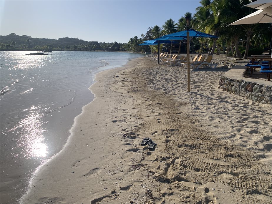 The beach outside the main bar, looking towards the bay/lagoon