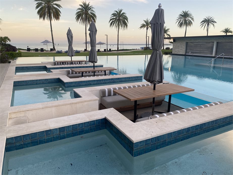 Infinity Pool with swim up bar and sunken seating area.